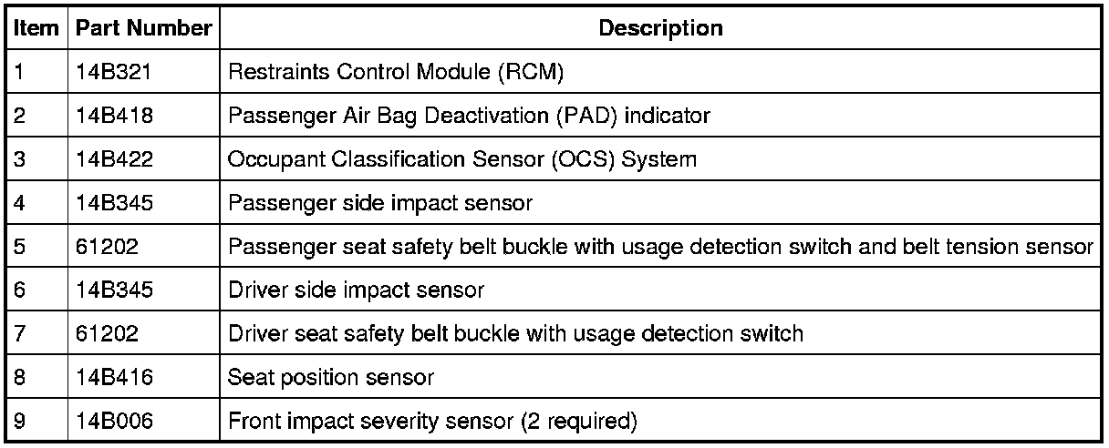 Air Bag and Safety Belt Pretensioner Supplemental Restraint System (SRS) Deployable Components