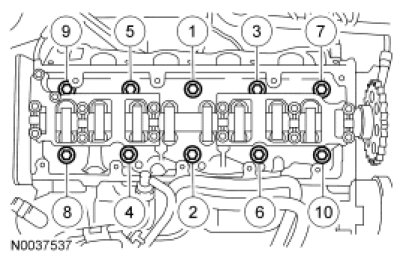 Cylinder HeadTighten the 10 cylinder head bolts in 6 stages, in the sequence shown.