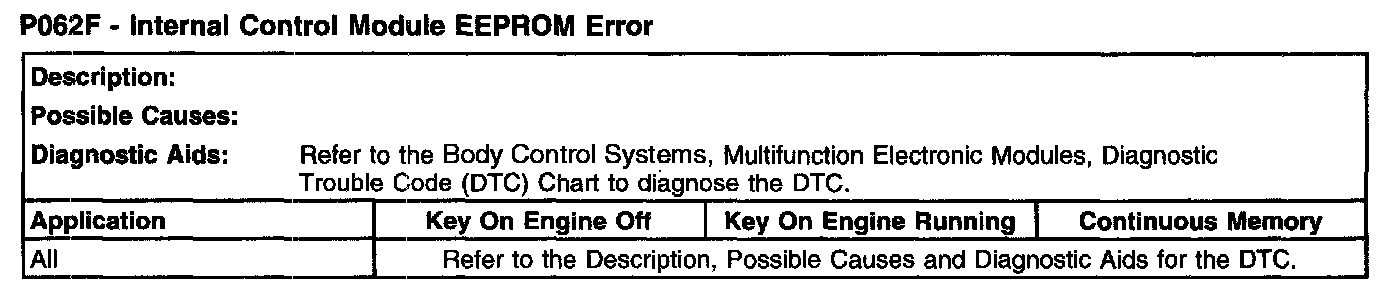 P062F - Internal Control Module EEPROM Error: