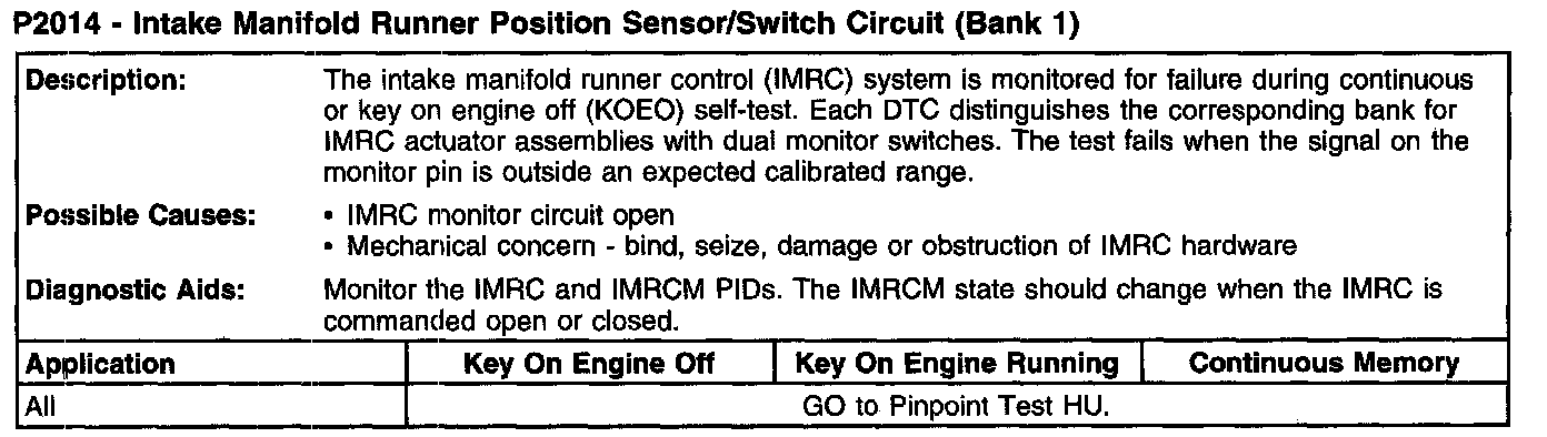 P2014 - Intake Manifold Runner Position Sensor/Switch Circuit (Bank 1):
