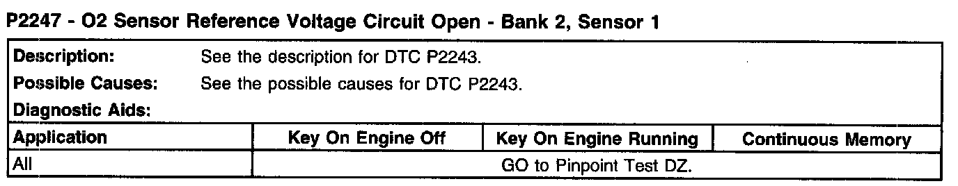 P2247 - O2 Sensor Reference Voltage Circuit Open - Bank 2, Sensor 1: