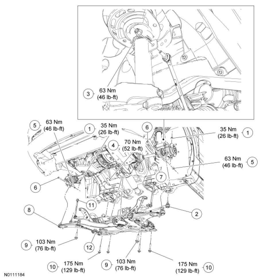 12. Index-mark the location of the subframe to the vehicle before removal.