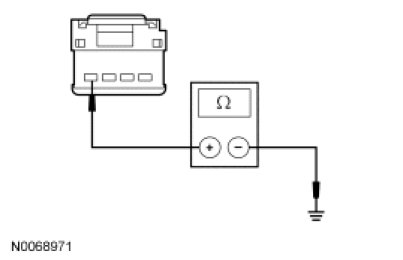 - Measure the resistance between the luggage compartment lid latch C430-4, circuit GD110 (BK/WH), harness side and ground.