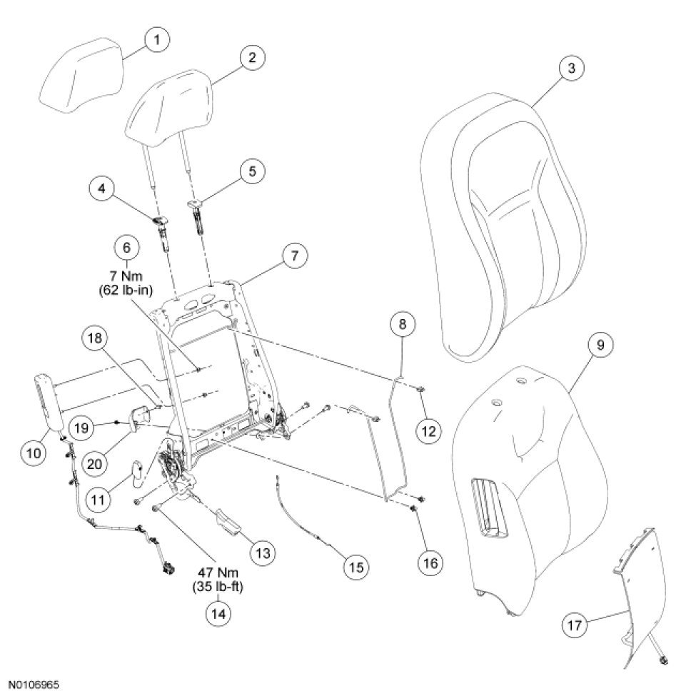 NOTE: LH seat with 4-way seat track shown, 2-way similar. For RH seat cushion Occupant Classification Sensor (OCS) system components, refer to Restraint Systems.