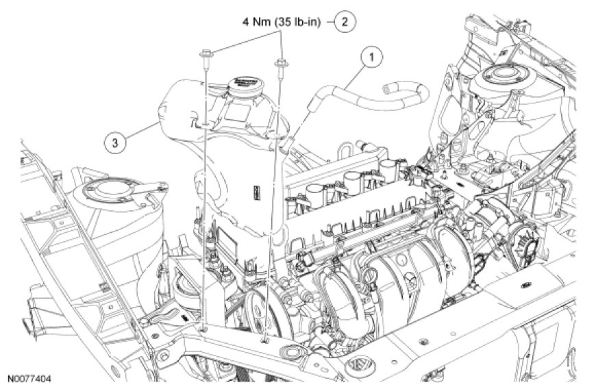 3. Remove the 2 coolant expansion tank bolts.