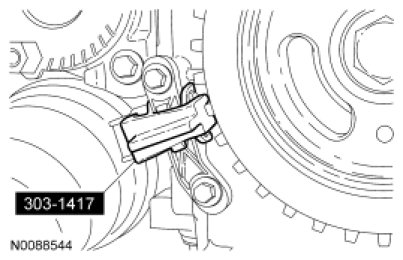 2. Using the Crankshaft Sensor Aligner, adjust the CKP sensor. Tighten the 2 CKP sensor bolts to 7 Nm (62 lb-in).