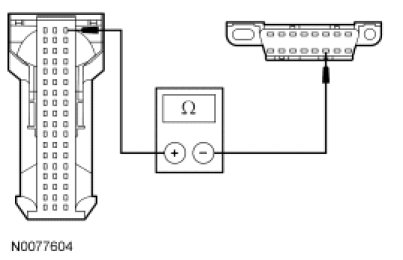 - Measure the resistance between the APIM C2298-16, circuit VDB06 (GY/OG), harness side and the DLC C251-3, circuit VDB06 (GY/OG), harness side.