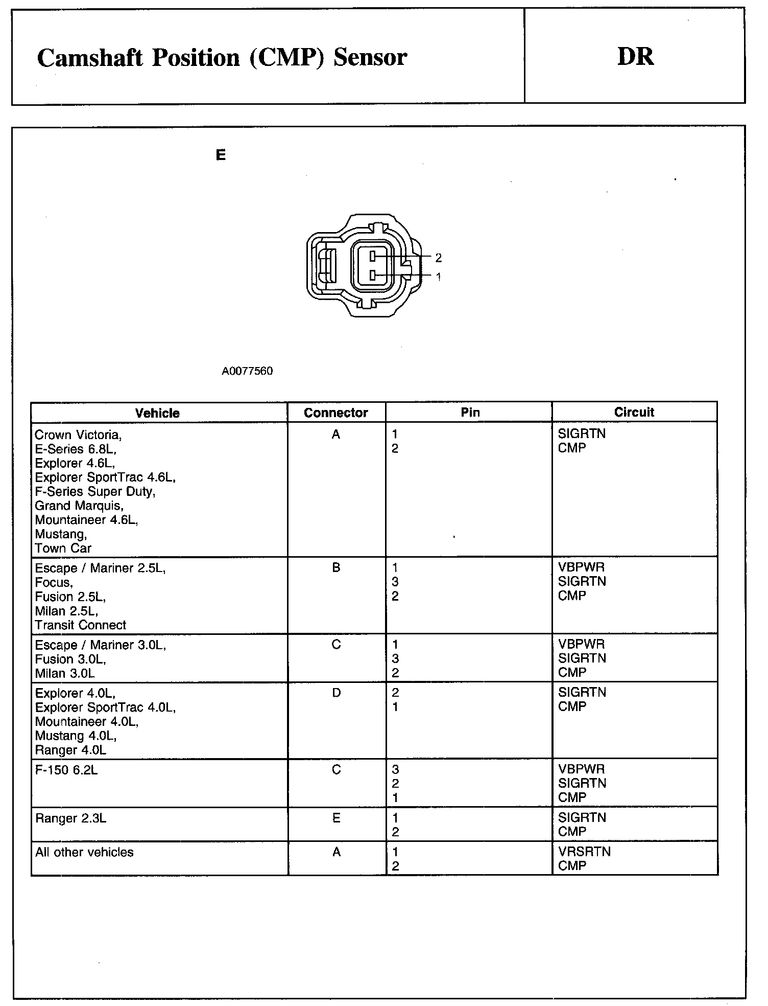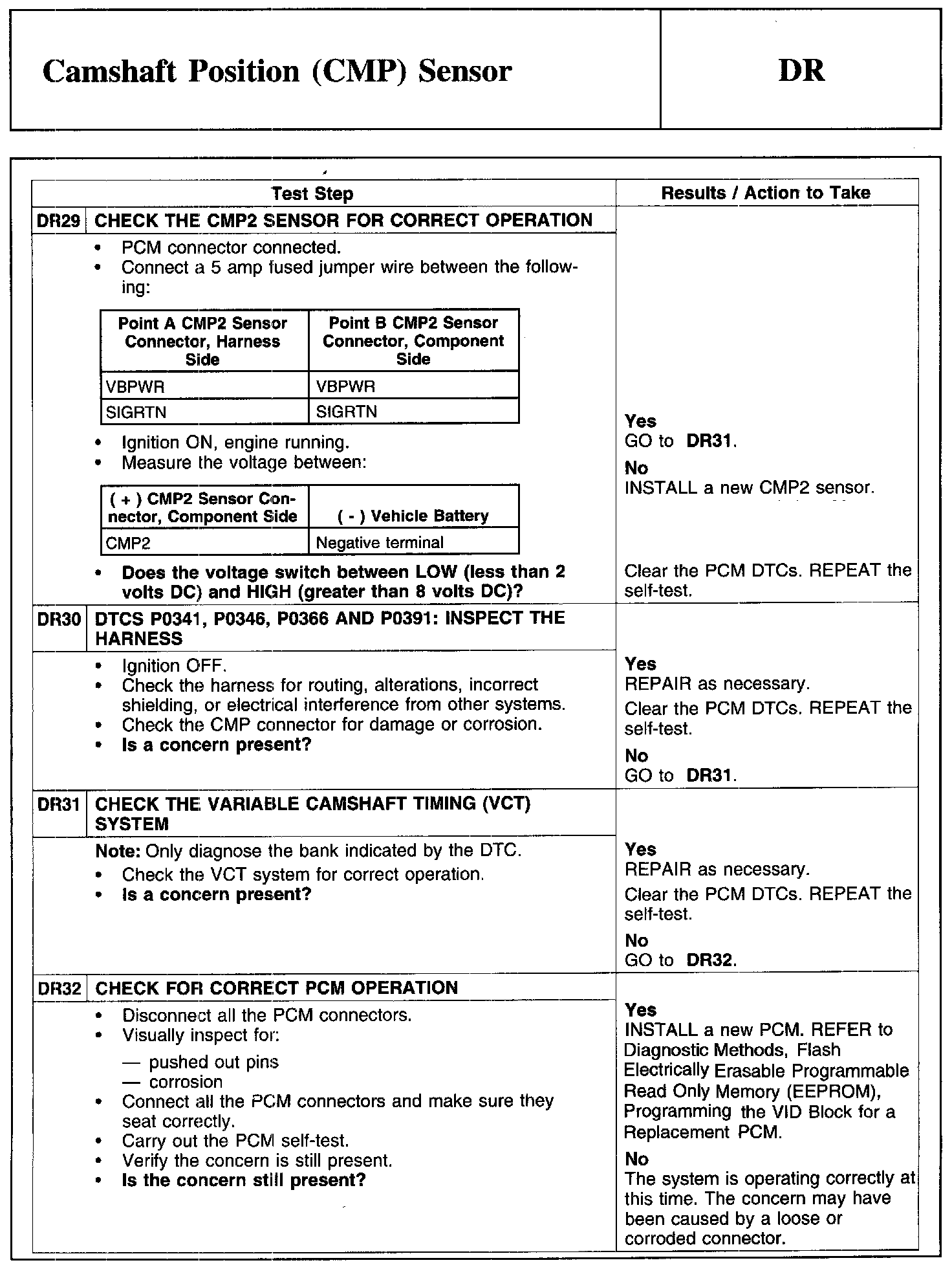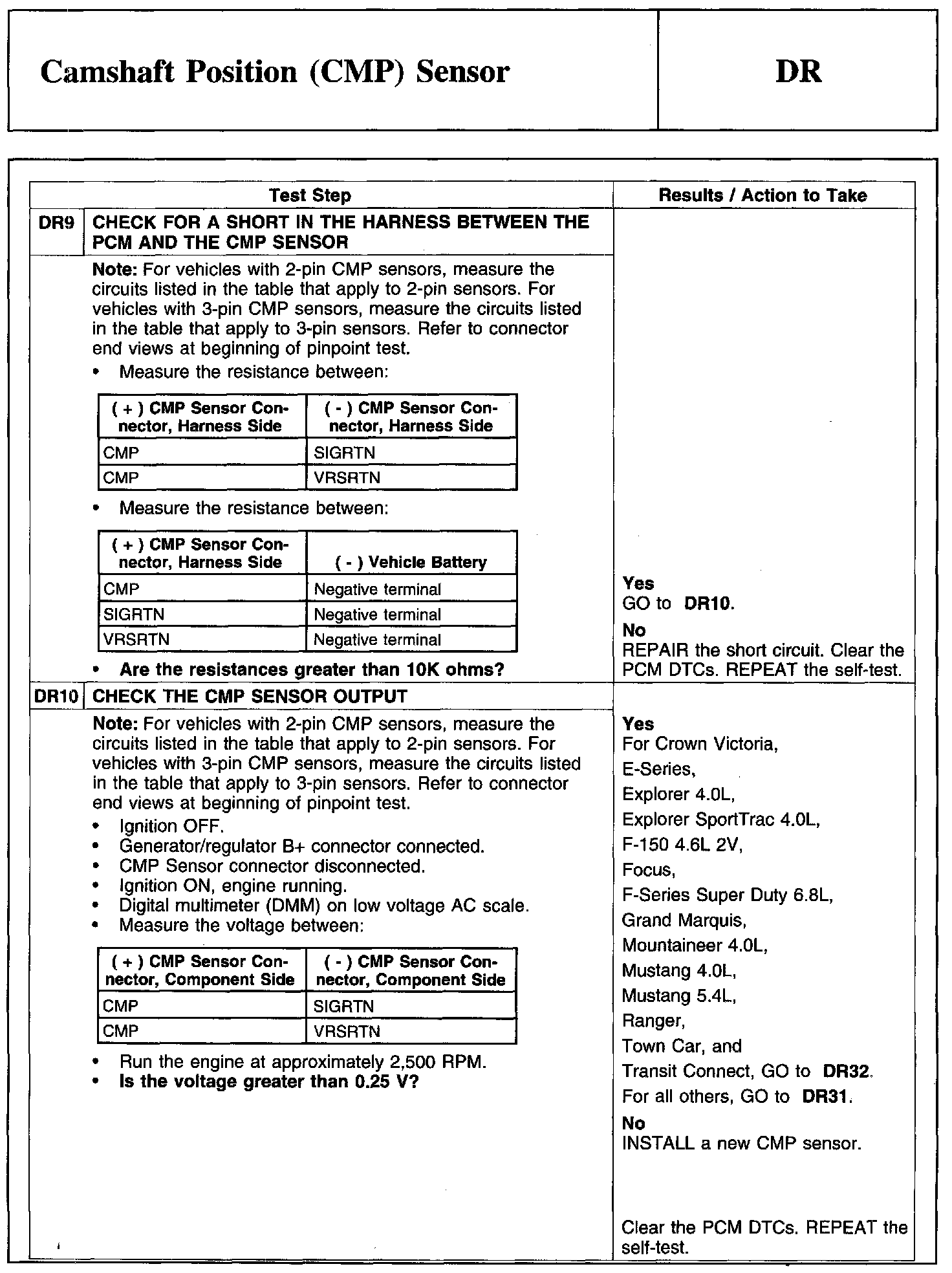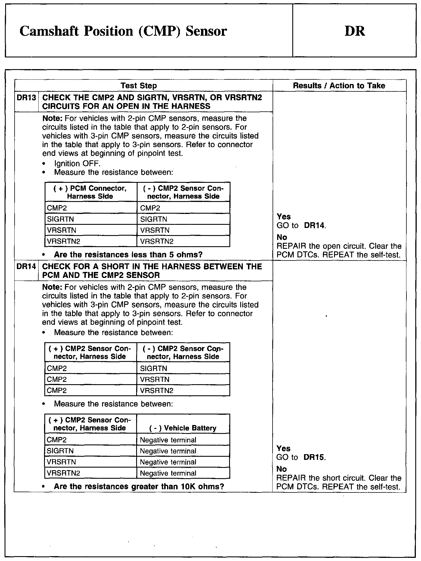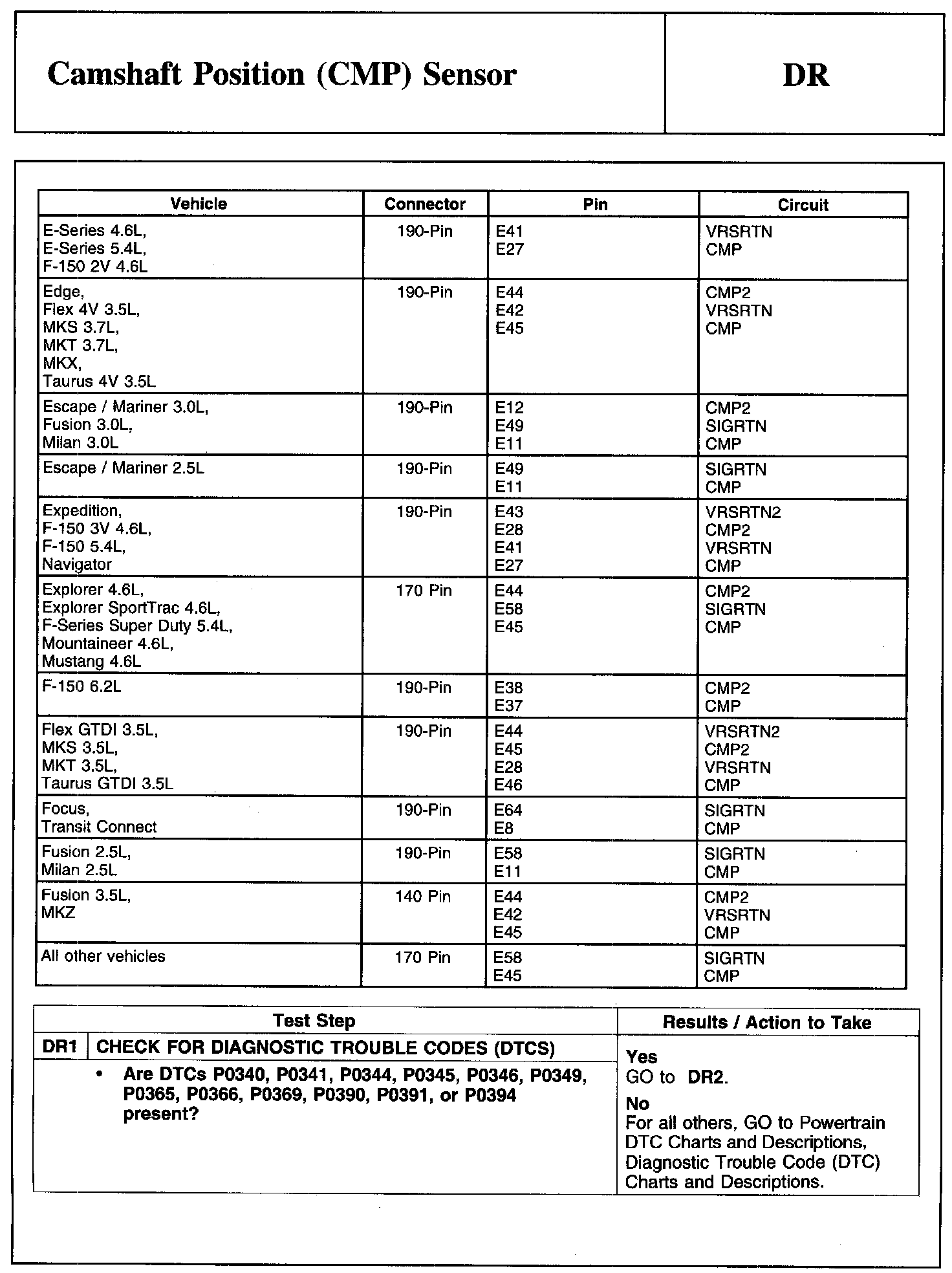 Test DR: Camshaft Position (CMP) Sensor