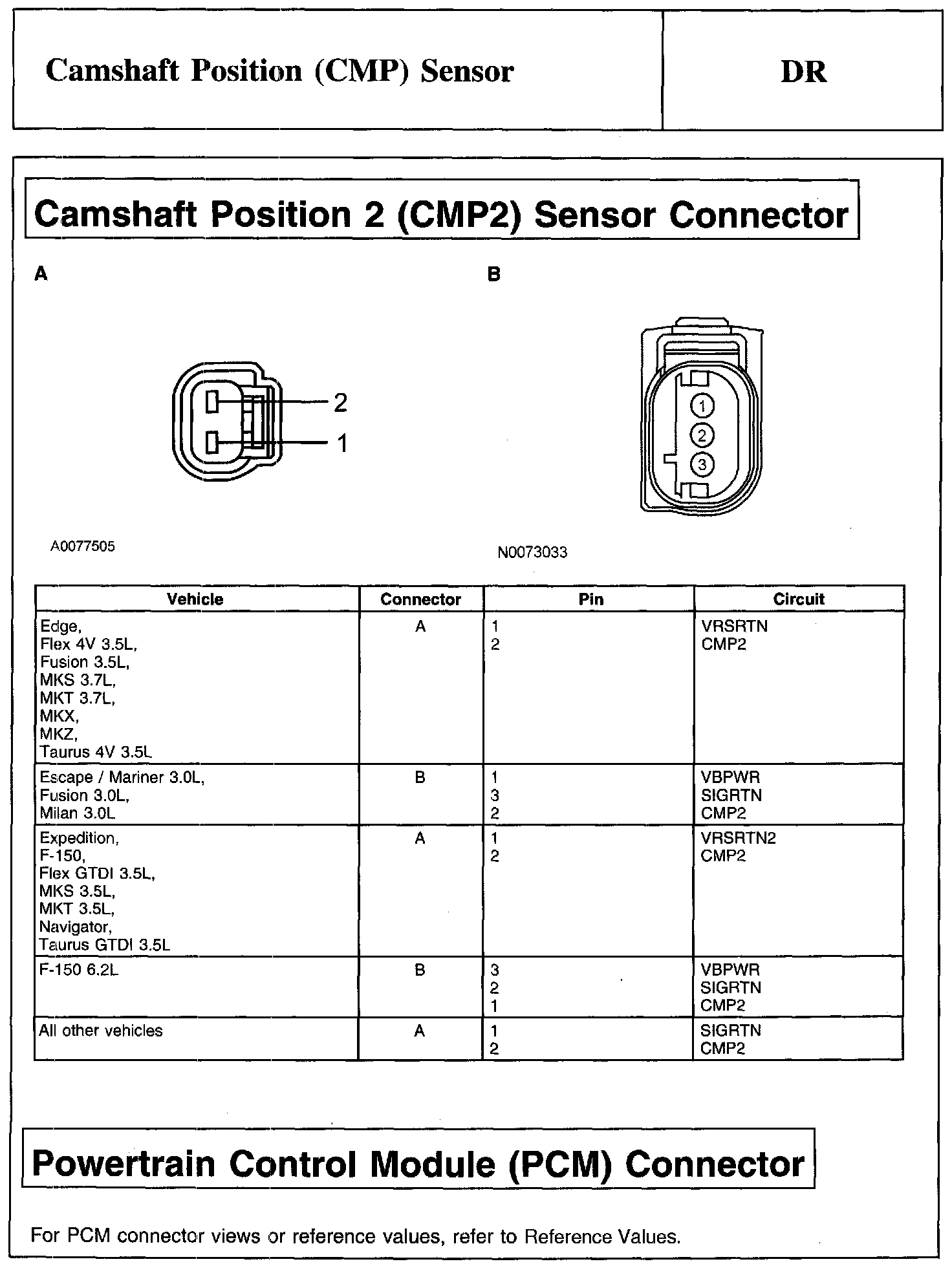 PINPOINT TEST DR: CAMSHAFT POSITION (CMP) SENSORCamshaft Position (CMP) Sensor Connector: