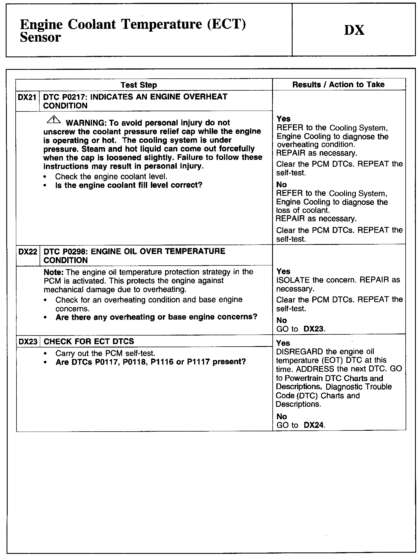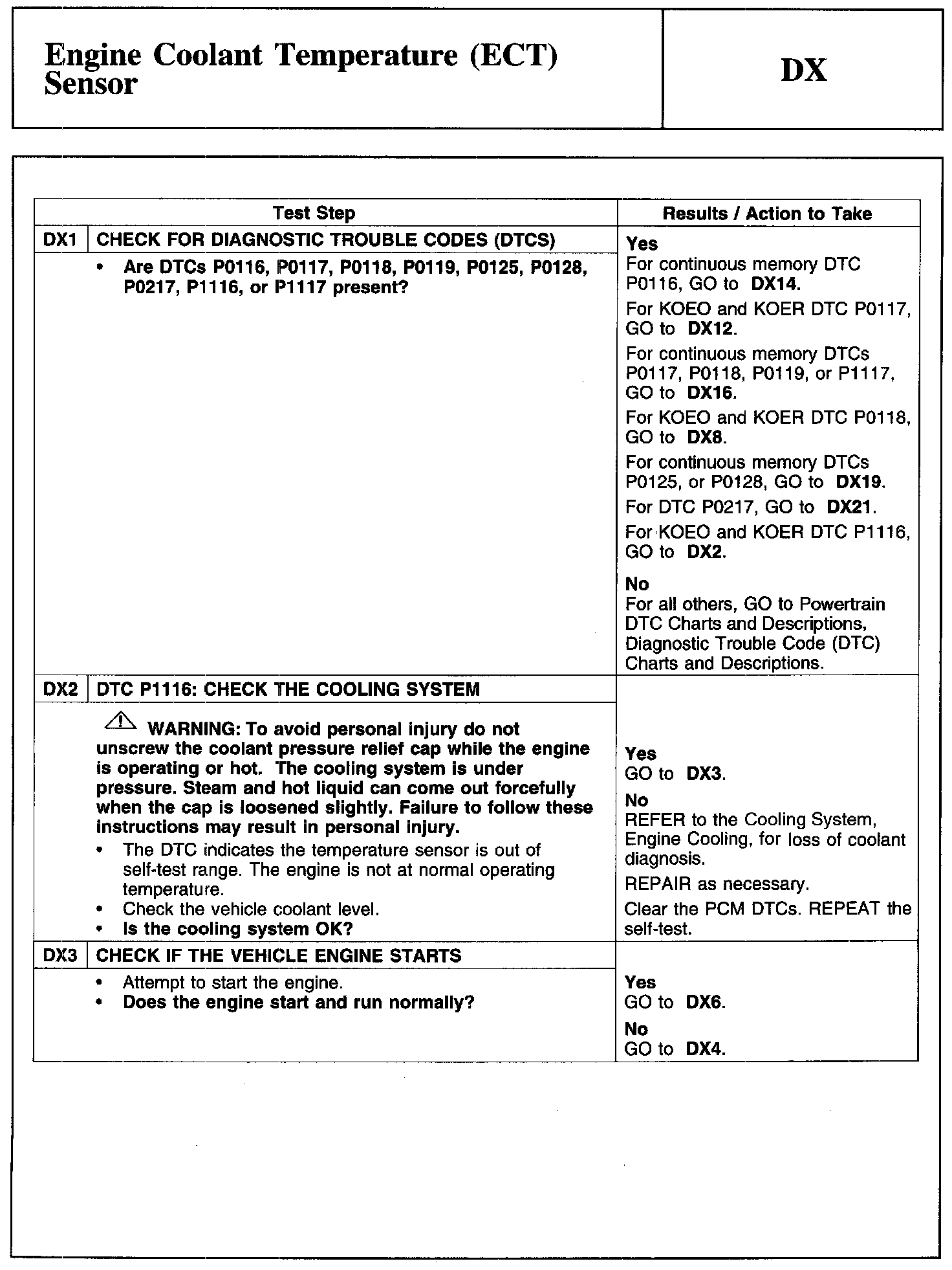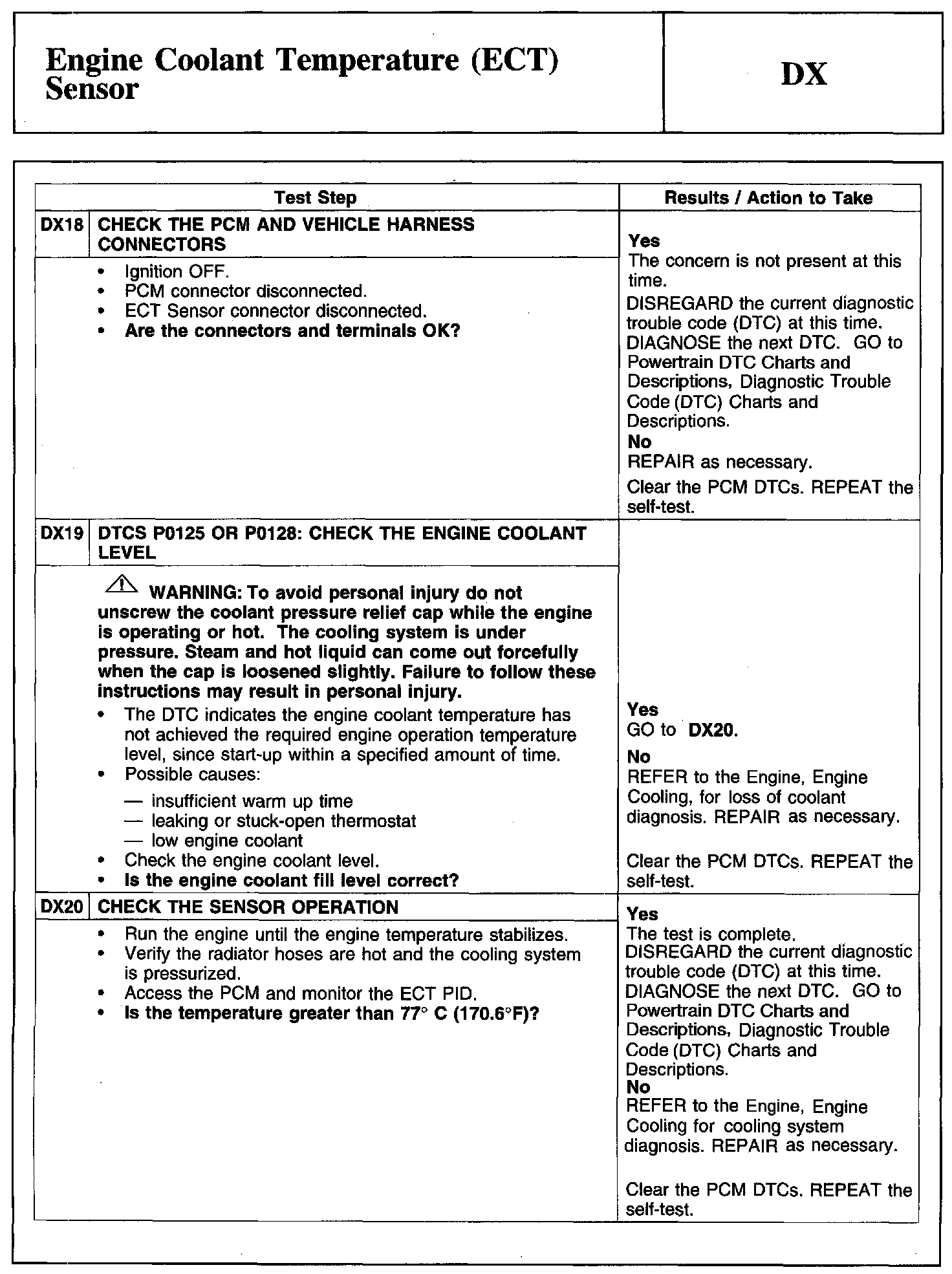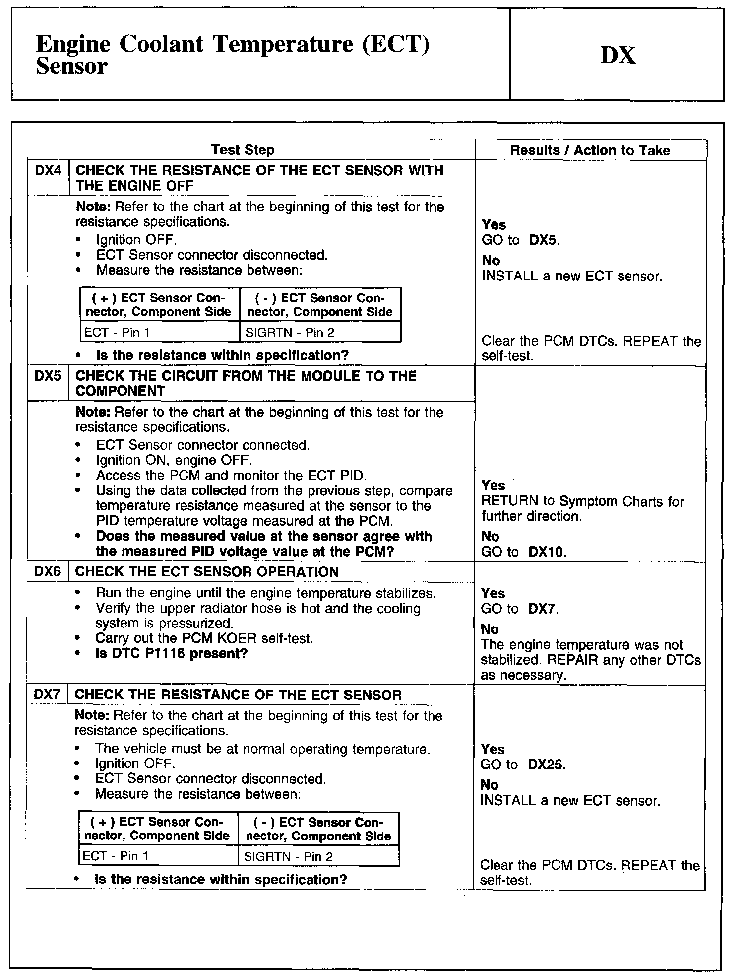 Test DX: Engine Coolant Temperature (ECT) Sensor
