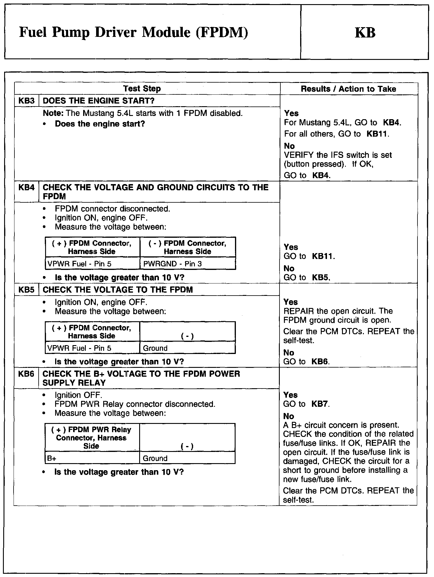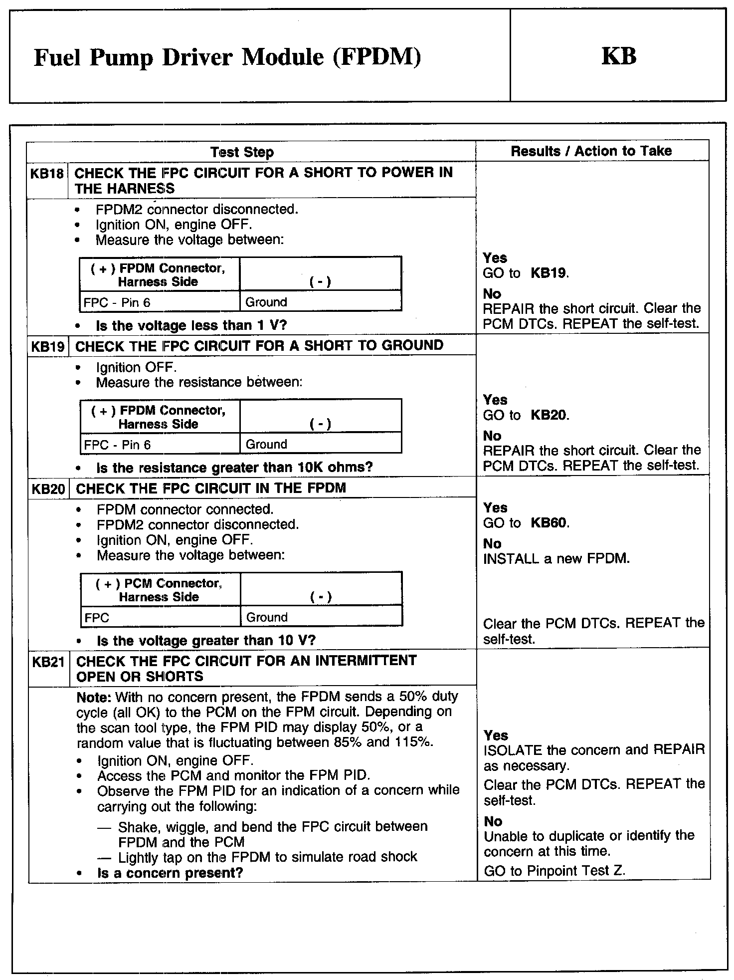 PINPOINT TEST KB: FUEL PUMP DRIVER MODULE (FPDM)Warning And Fuel Pump Driver Module (FPDM) Connector: