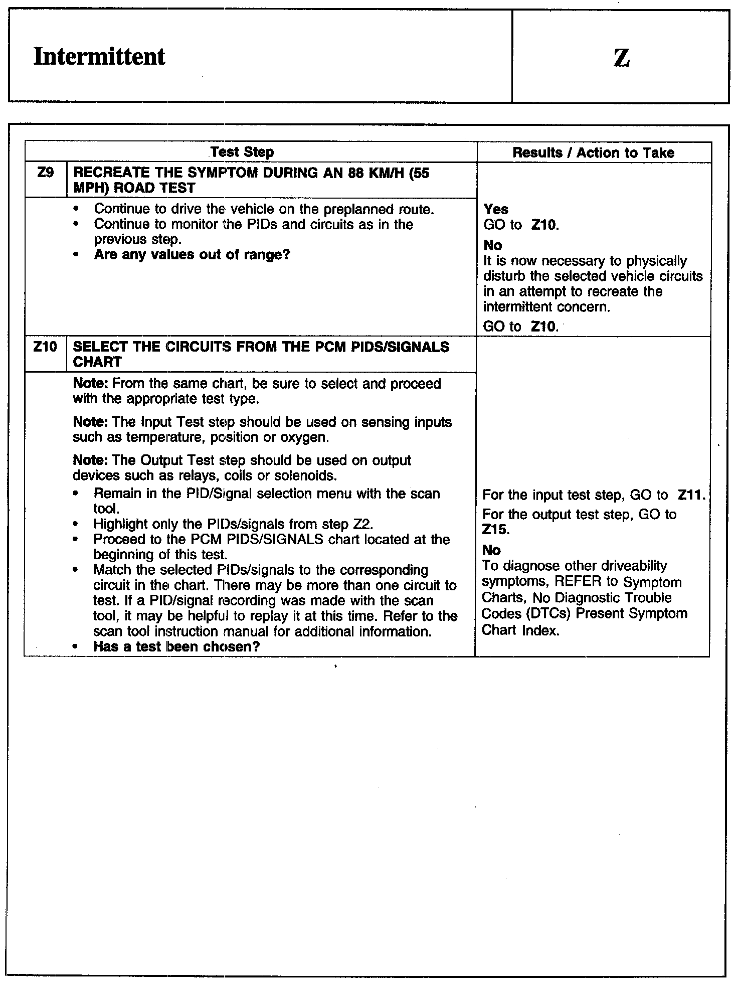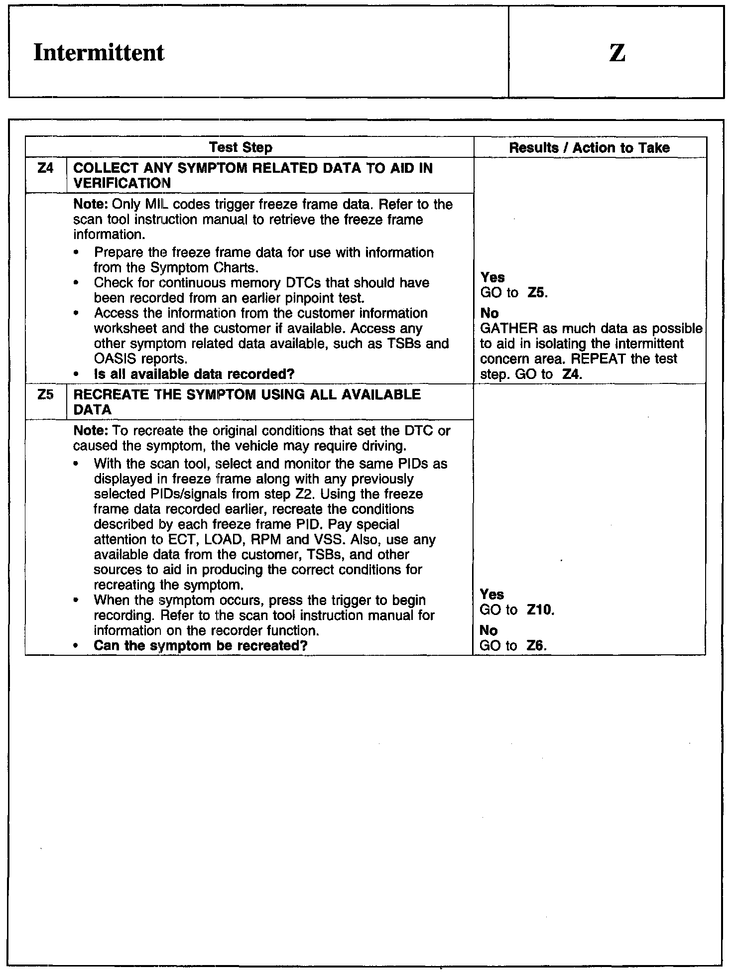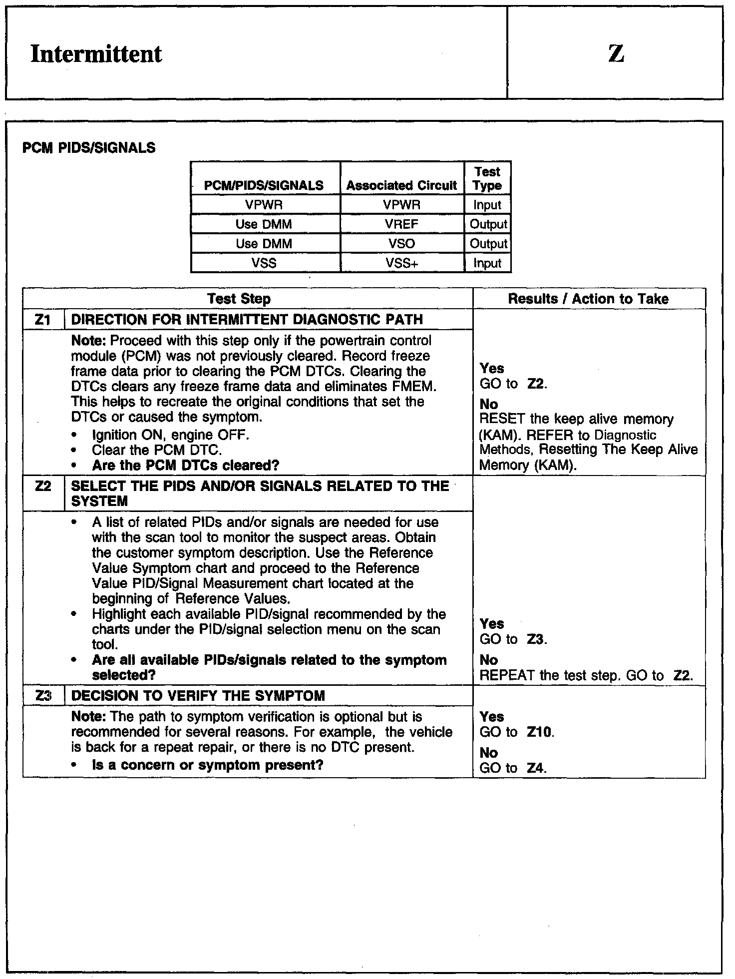 PINPOINT TEST Z: INTERMITTENT
