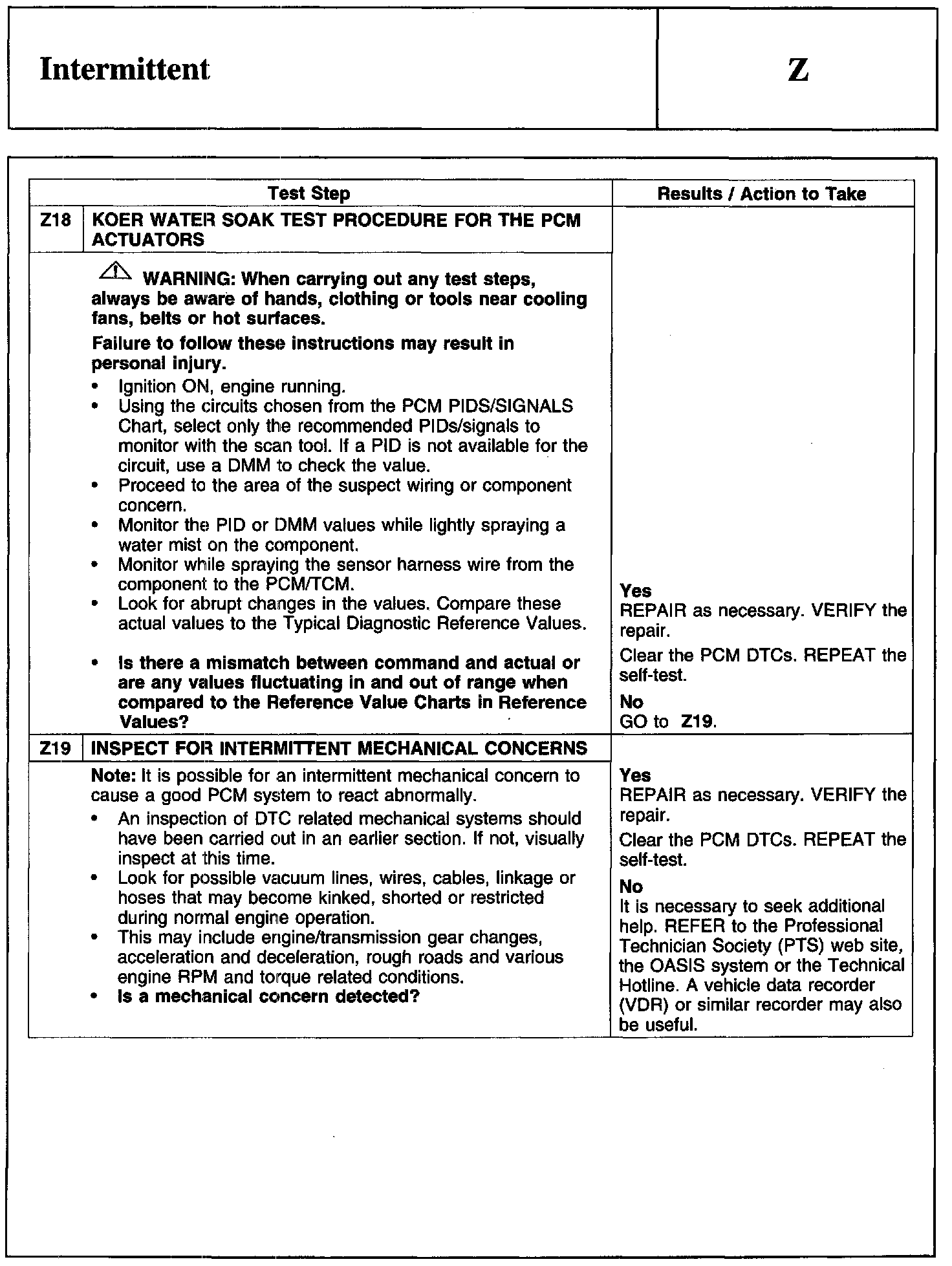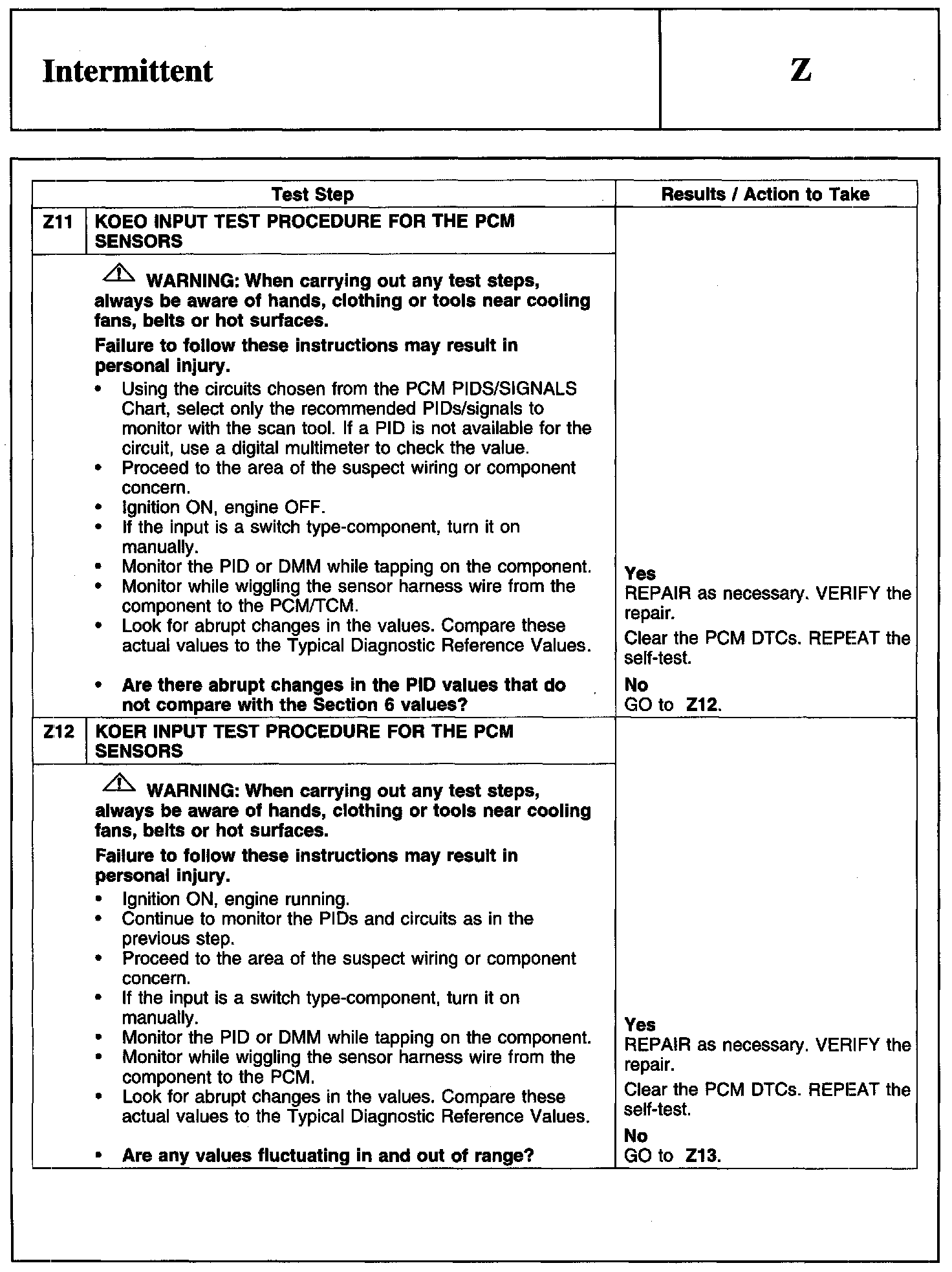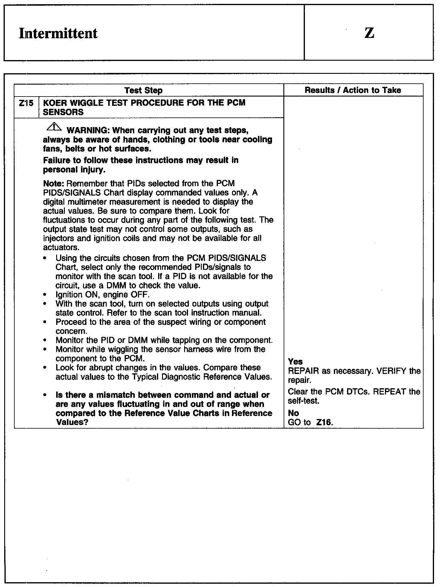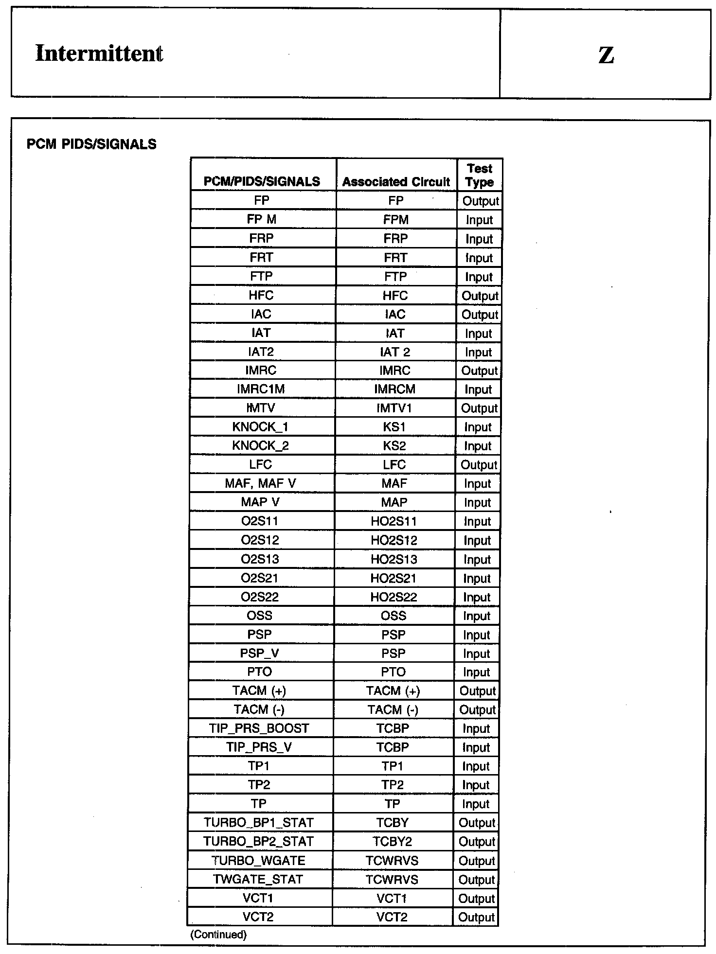 PINPOINT TEST Z: INTERMITTENT