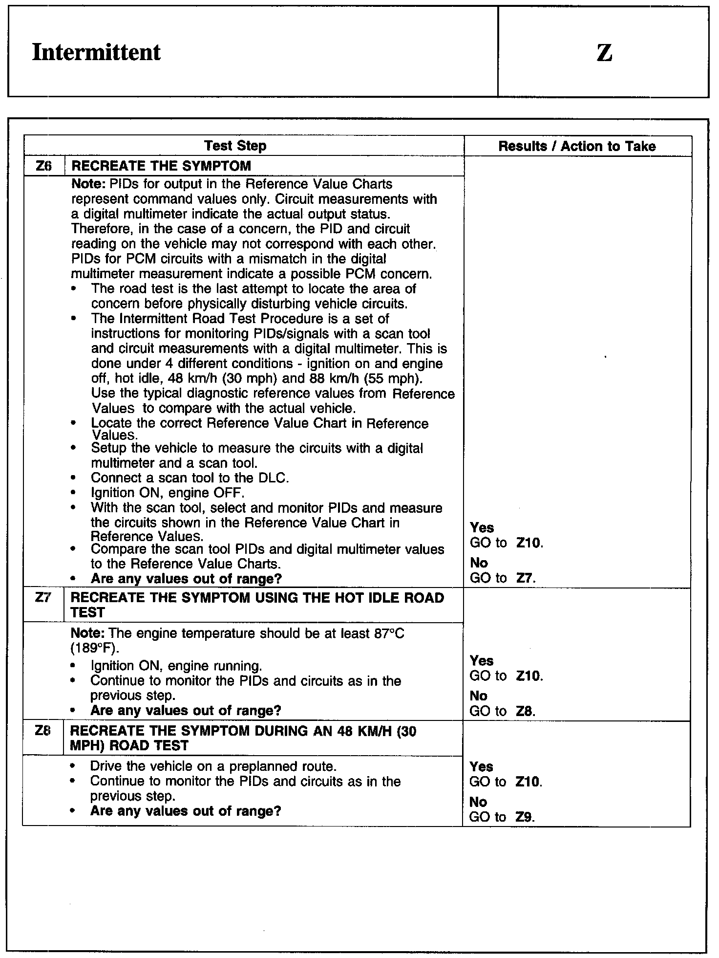 Test Z: Intermittent