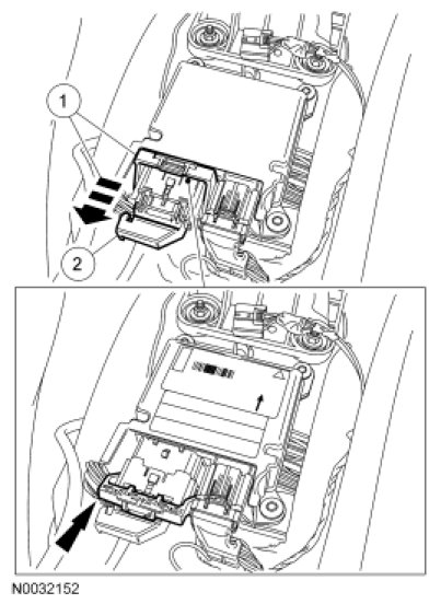 - NOTICE: Do not push the connector to where the lever pivots and seats itself. Light pressure is needed to get the connector into position on the Restraints Control Module (RCM) before using the lever to fully seat the connector.