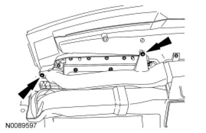 8. Remove the 2 passenger air bag module-to-instrument panel crossbeam bolts.