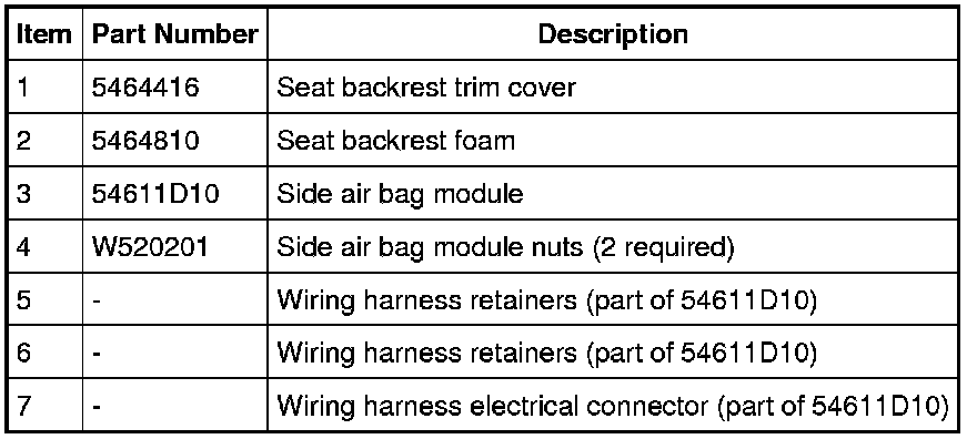 NOTE: If a side air bag deployment took place, a new seat backrest pad, trim cover, side air bag module and nuts must be installed. A new seat backrest frame should be installed if necessary.