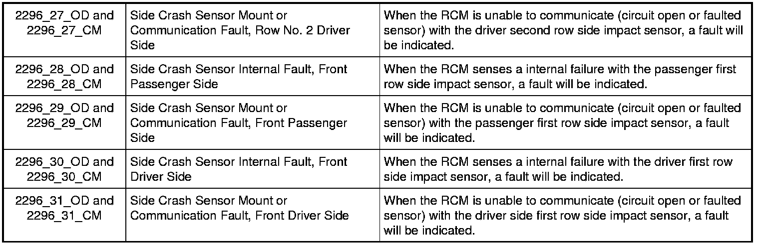 a Fault PIDs that end in OD indicate an on-demand status and are associated with on-demand DTC B2296. Fault PIDs that end in CM indicate continuous memory status and are associated with continuous DTC B2296.