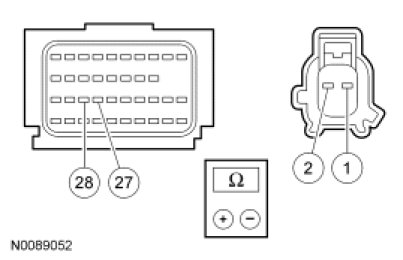 - Measure resistance between first row passenger side impact sensor C6211-1, circuit VR218 (YE/OG), harness side and C6211-2, circuit RR132 (BU/WH), harness side.