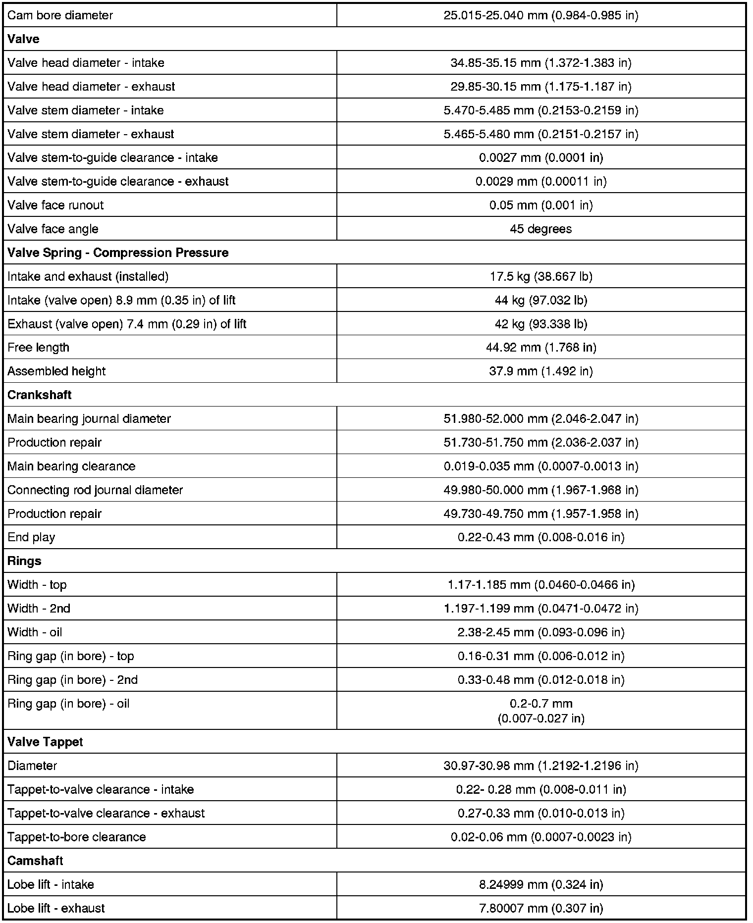 Camshaft Gear/Sprocket Torque Specifications