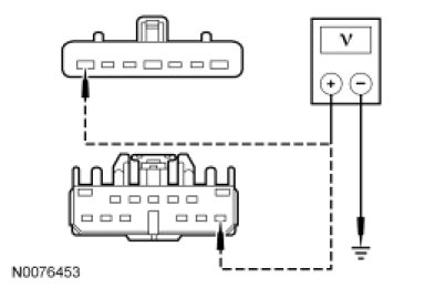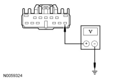 - Measure the voltage between SJB C2280E-8, circuit CE619 (BU/BN), harness side and ground.