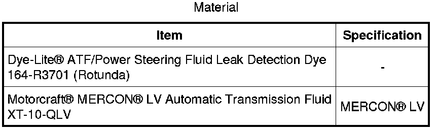 Dye-Lite(R) ATF/Power Steering Fluid Leak Detection Dye 164-R3701 or equivalent is used to detect a transmission fluid leak.
