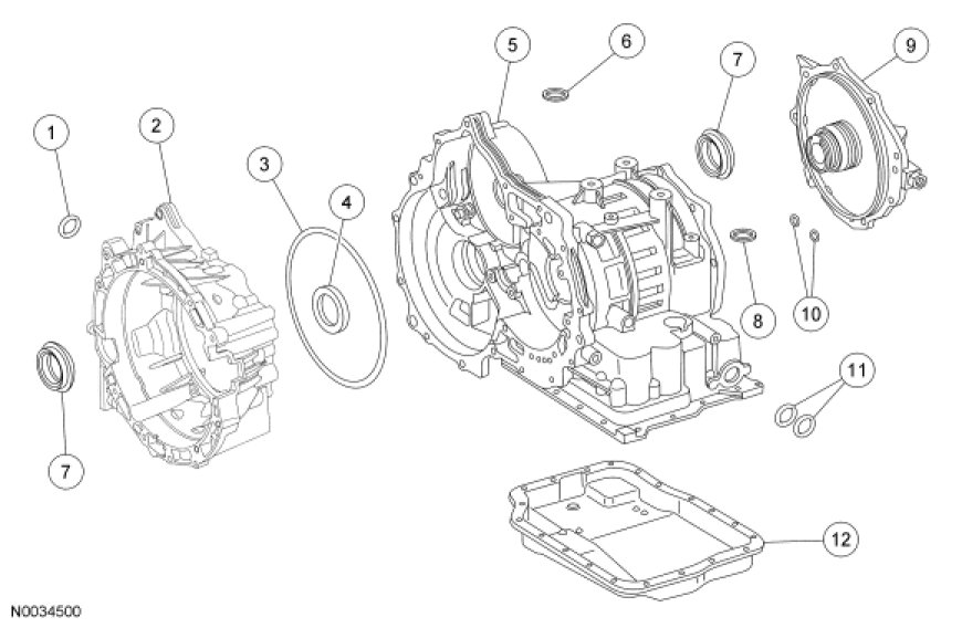 4. Transmission fluid that leaks by a pump-to-case screw or pump gasket will be deposited on the inside of the torque converter housing only. Transmission fluid will not be deposited on the back of the torque converter.