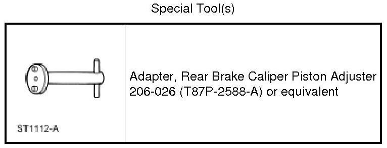 Using the Rear Brake Caliper Piston Adjuster Adapter, compress the brake caliper piston into the brake caliper bore.