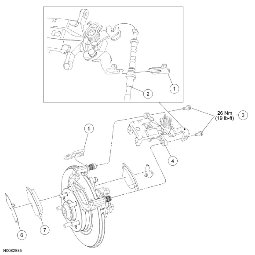 5. NOTE: Make sure that the brake caliper hose is not twisted.