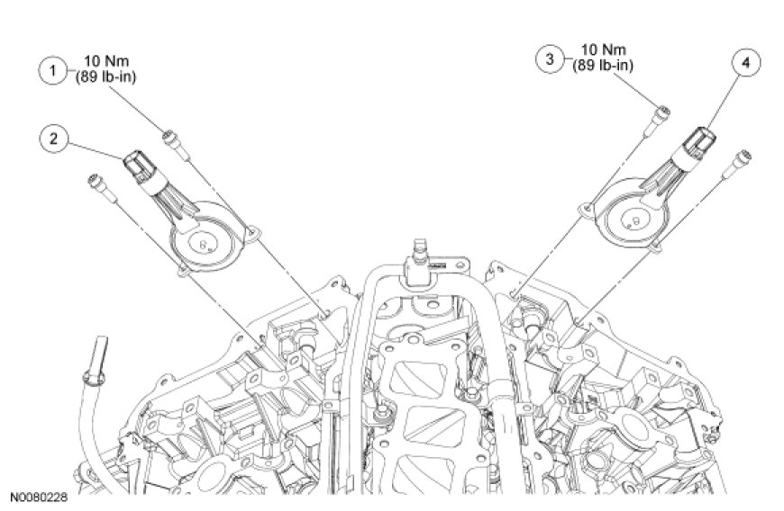 1. Remove the LH or RH valve cover. For additional information, refer to Engine.