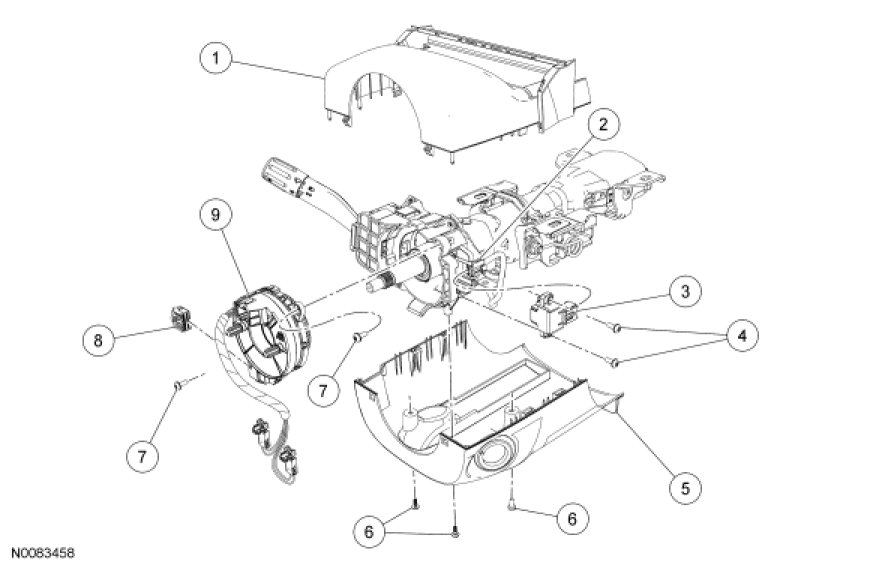 2. NOTICE: Make sure the road wheels are in the straight-ahead position. Damage to the clockspring may occur.