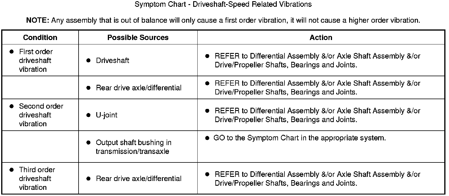 Symptom Chart - Driveshaft-Speed Related Vibrations