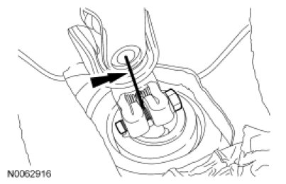 15. NOTICE: Do not use a hammer to separate the outer tie-rod end from the wheel knuckle or damage to the wheel knuckle may result.