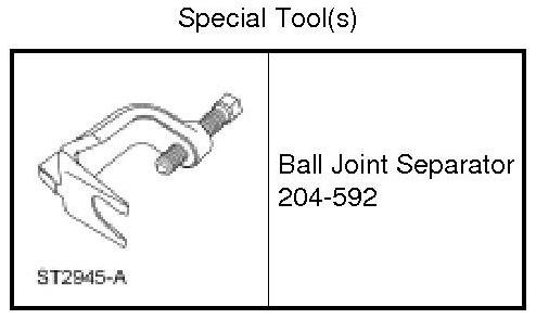 Using the Ball Joint Separator, separate the outer tie-rod ends from the knuckle.