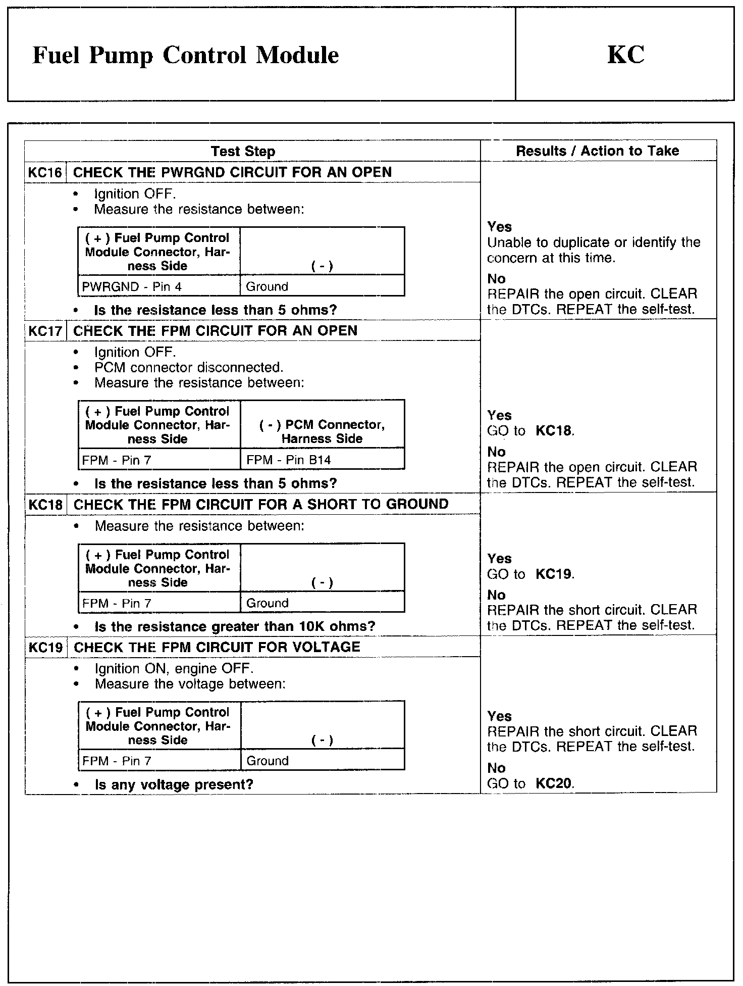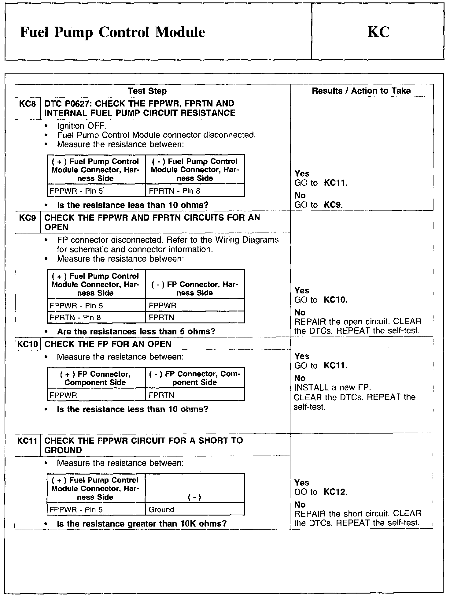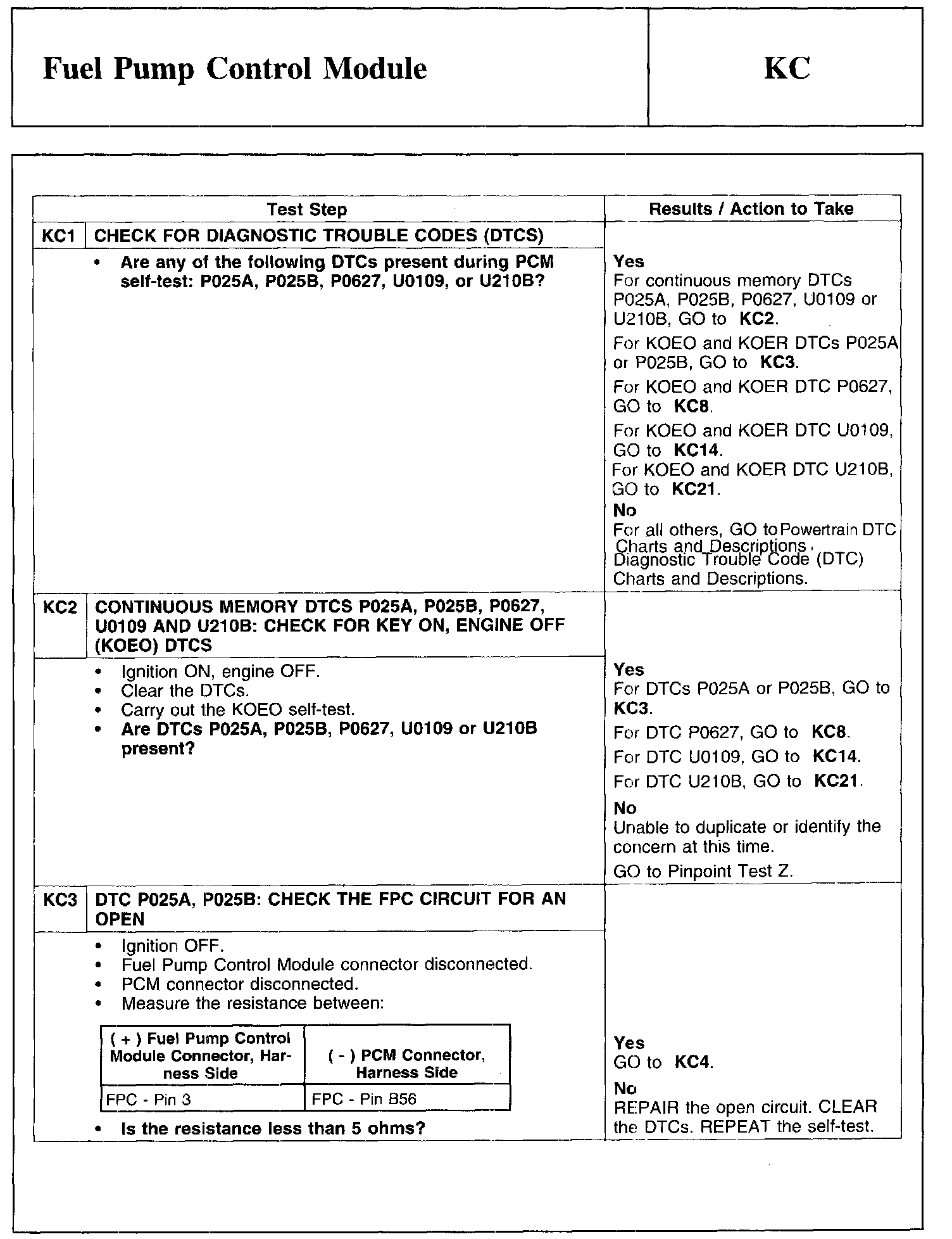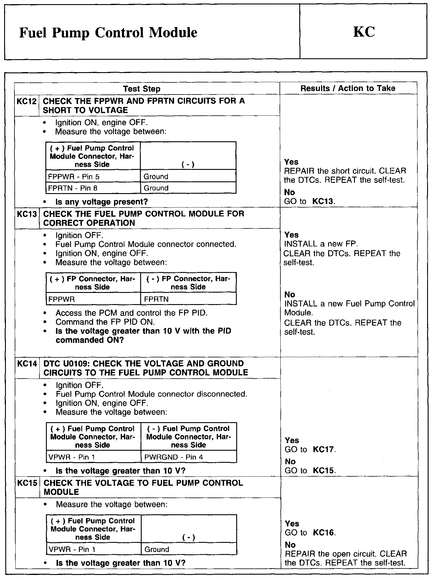 Test KC: Fuel Pump Control Module