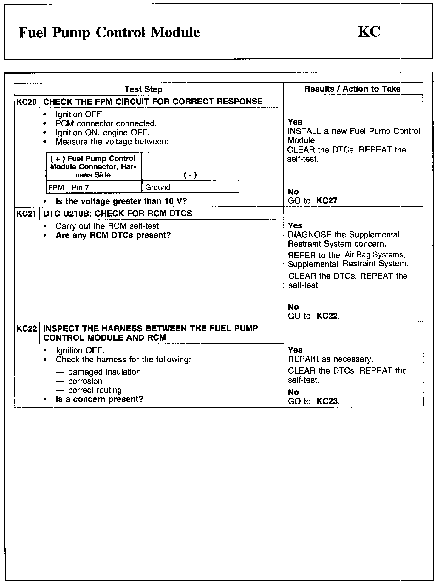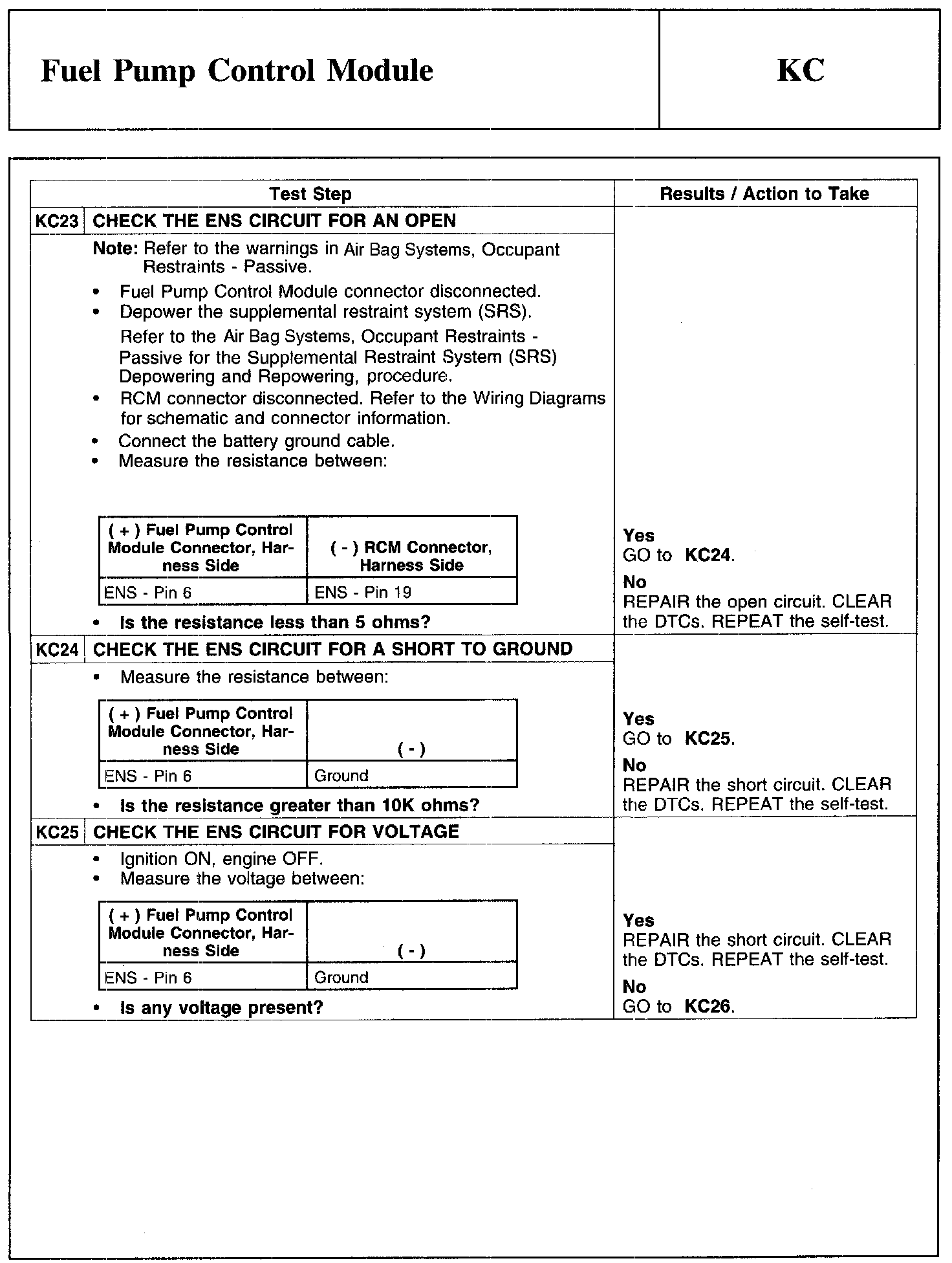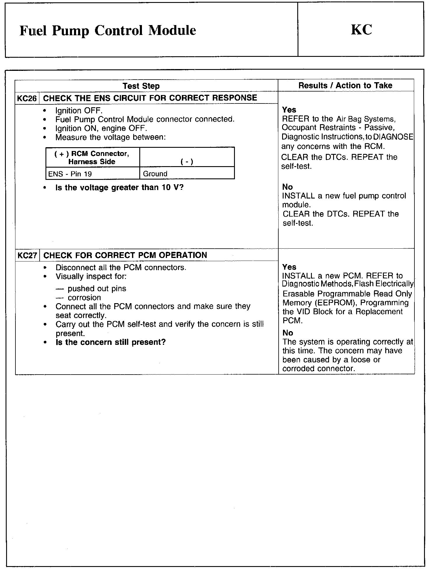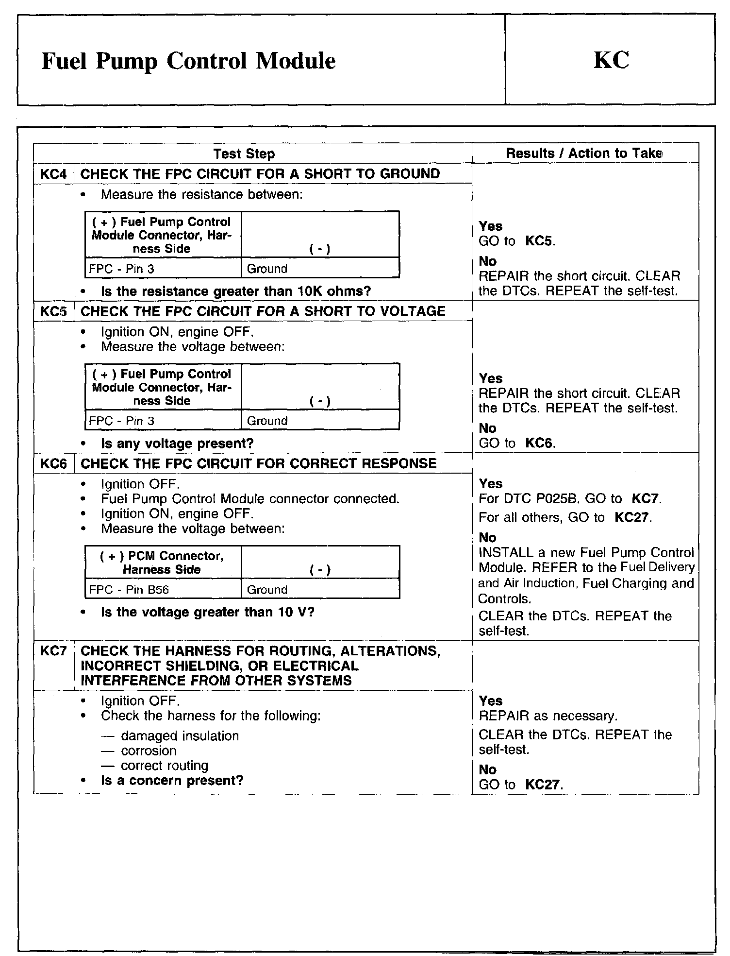 Test KC: Fuel Pump Control Module