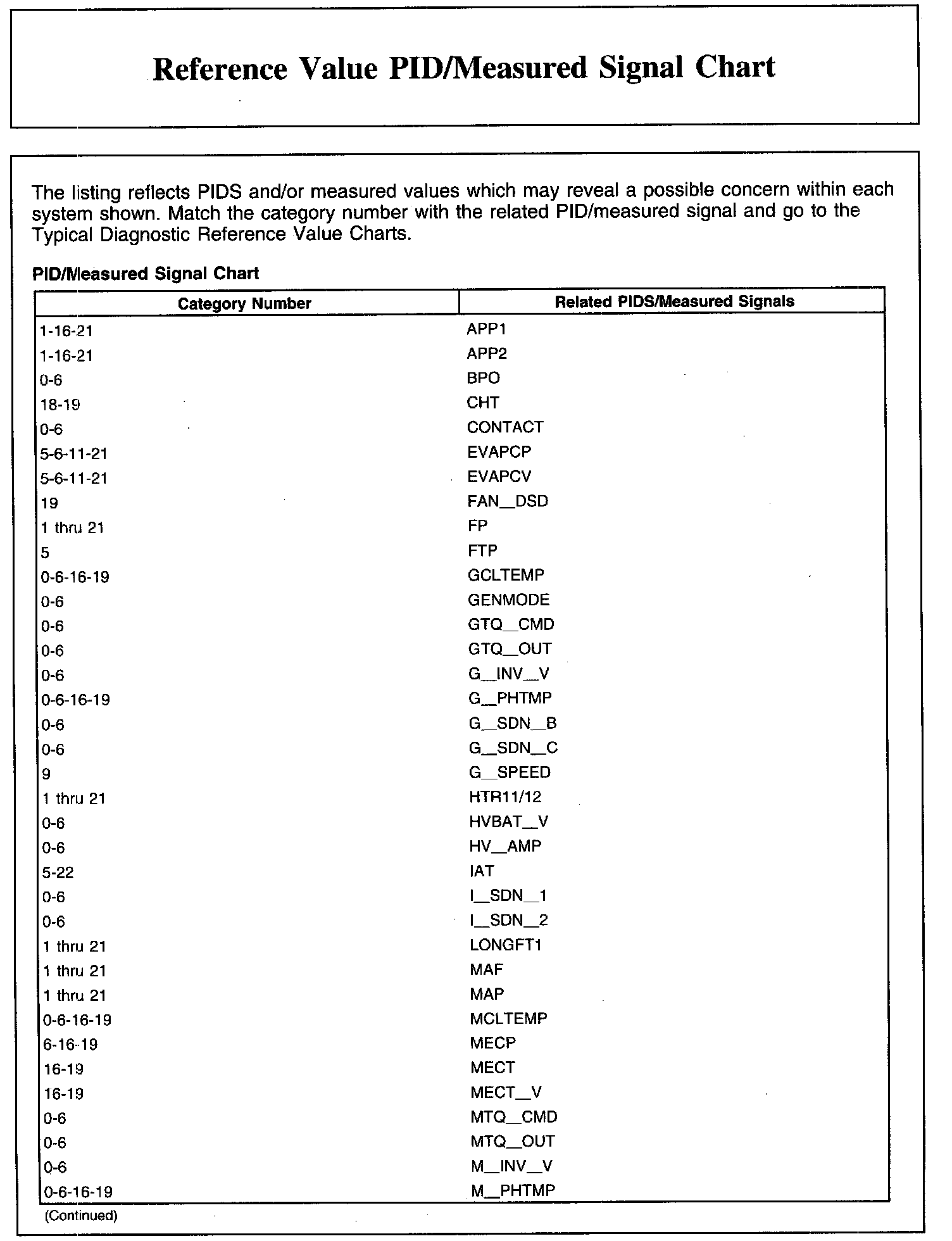 REFERENCE VALUE PID/MEASURED SIGNAL CHART