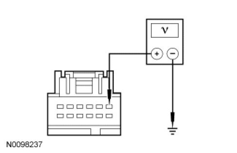- Measure the voltage between selector lever harness C3233-1, circuit CET53 (BU/OG), vehicle harness side and ground, while applying the brake pedal.