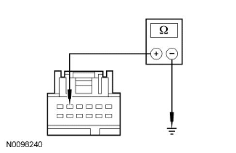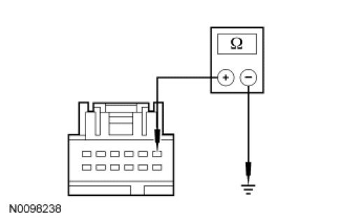 - Measure the resistance between selector lever harness C3233-5, circuit GD116 (BK/VT), vehicle harness side and ground.