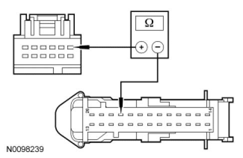 - Measure the resistance between the selector lever harness C3233-1, circuit CET53 (BU/OG), vehicle harness side and SJB