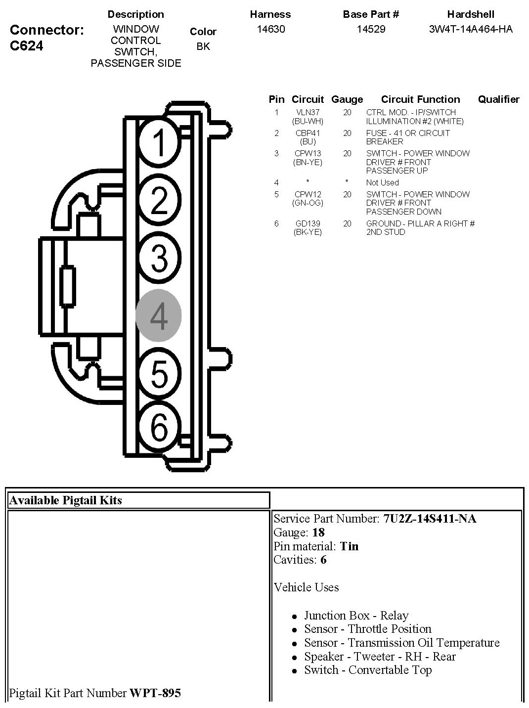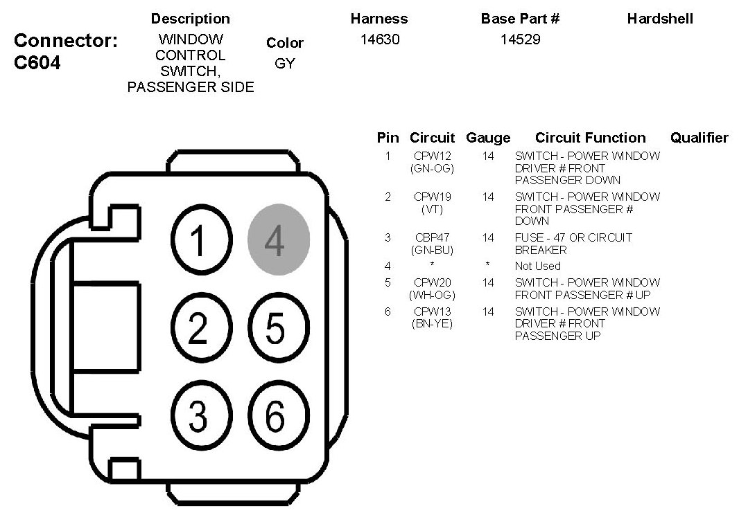 Window Control Switch, Passenger Side