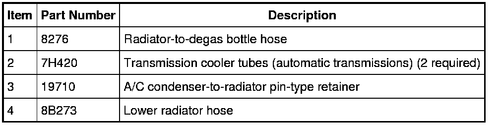 2. Remove the cooling fan motor and shroud. For additional information, refer to Cooling Fan Motor and Shroud - 2.5L, 3.0L (4V) Service and Repair.