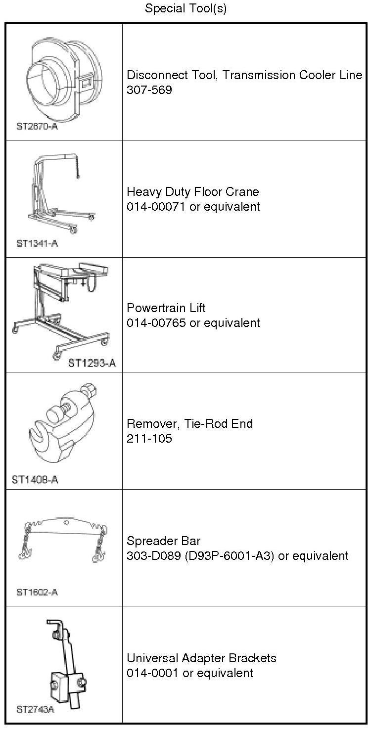1. With the vehicle in NEUTRAL, position it on a hoist. For additional information, refer to Vehicle Jacking and Lifting.