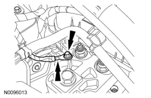 27. Remove the bolt and the EPAS system wiring harness ground.