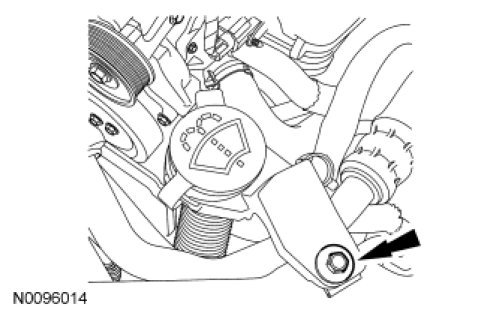 49. Remove the A/C tube/windshield washer reservoir bracket bolt.