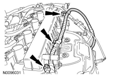 72. Detach the 4 wiring harness retainers (3 shown) from the valve cover stud bolts.