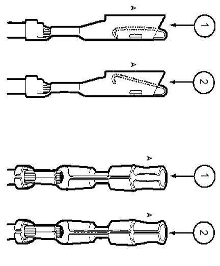 - Use heat shrinkable tubes marked with ES-1 (16-22 GA) or ES-2 (10-18 GA) to seat wire splice.