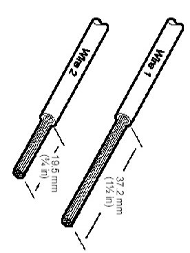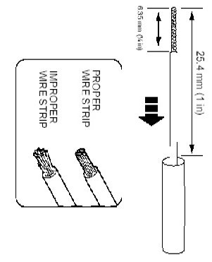 2. Strip 6.35mm (1/4 in) of insulation from each wire end, taking care not to nick or cut wire strands.