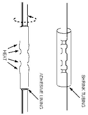 13. Use shielded heat gun to heat the repaired area until adhesive flows out of both ends of the heat shrink tubing.