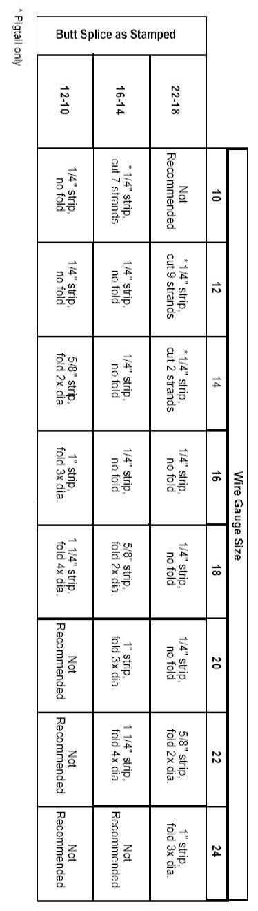 Recommended splicing method - Crimp (For 10-22 AWG Diameter Wire to Like Wire Diameter)